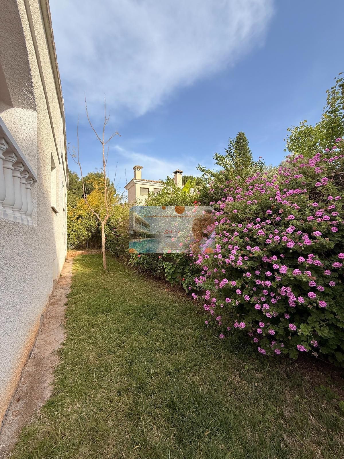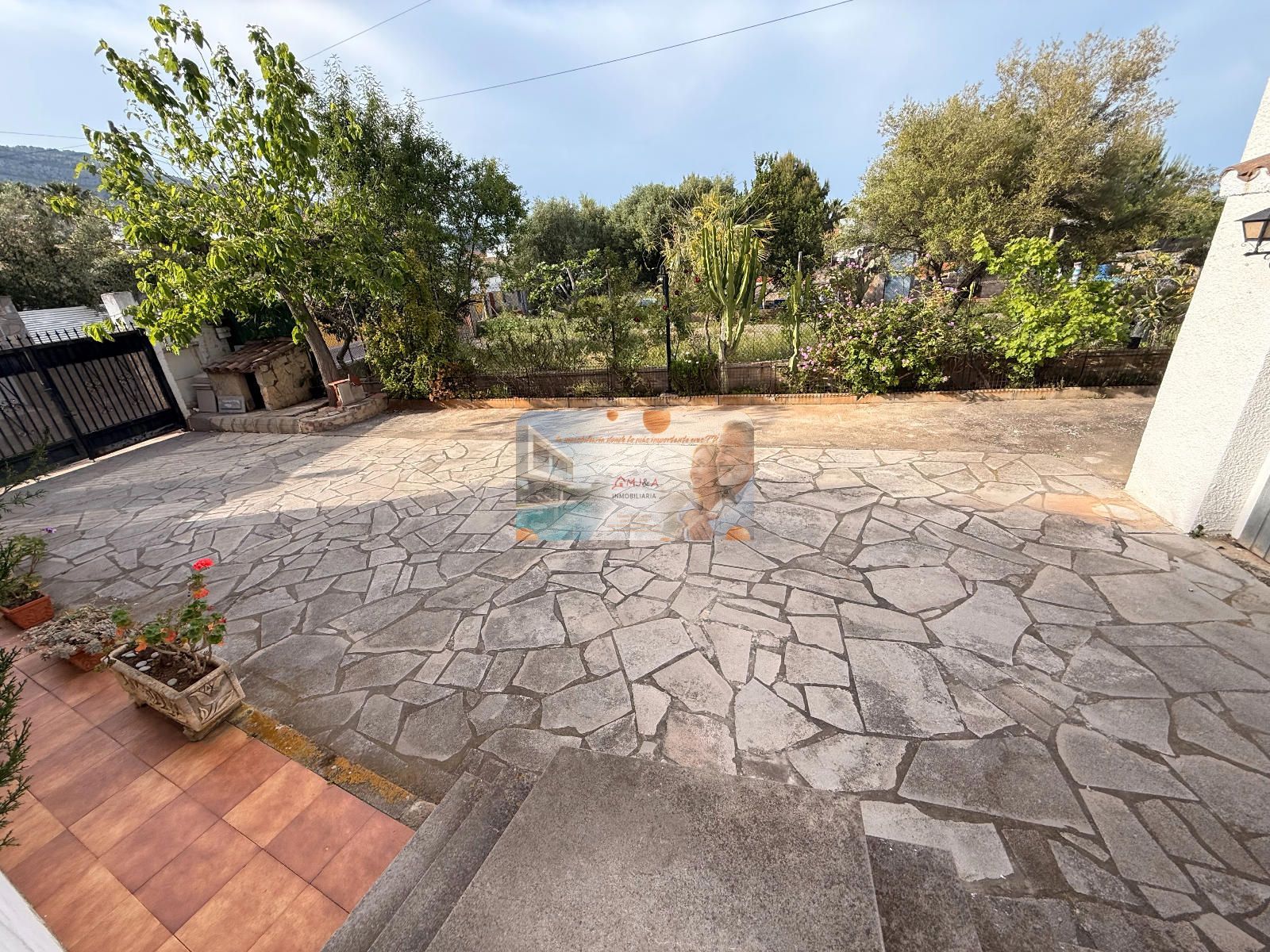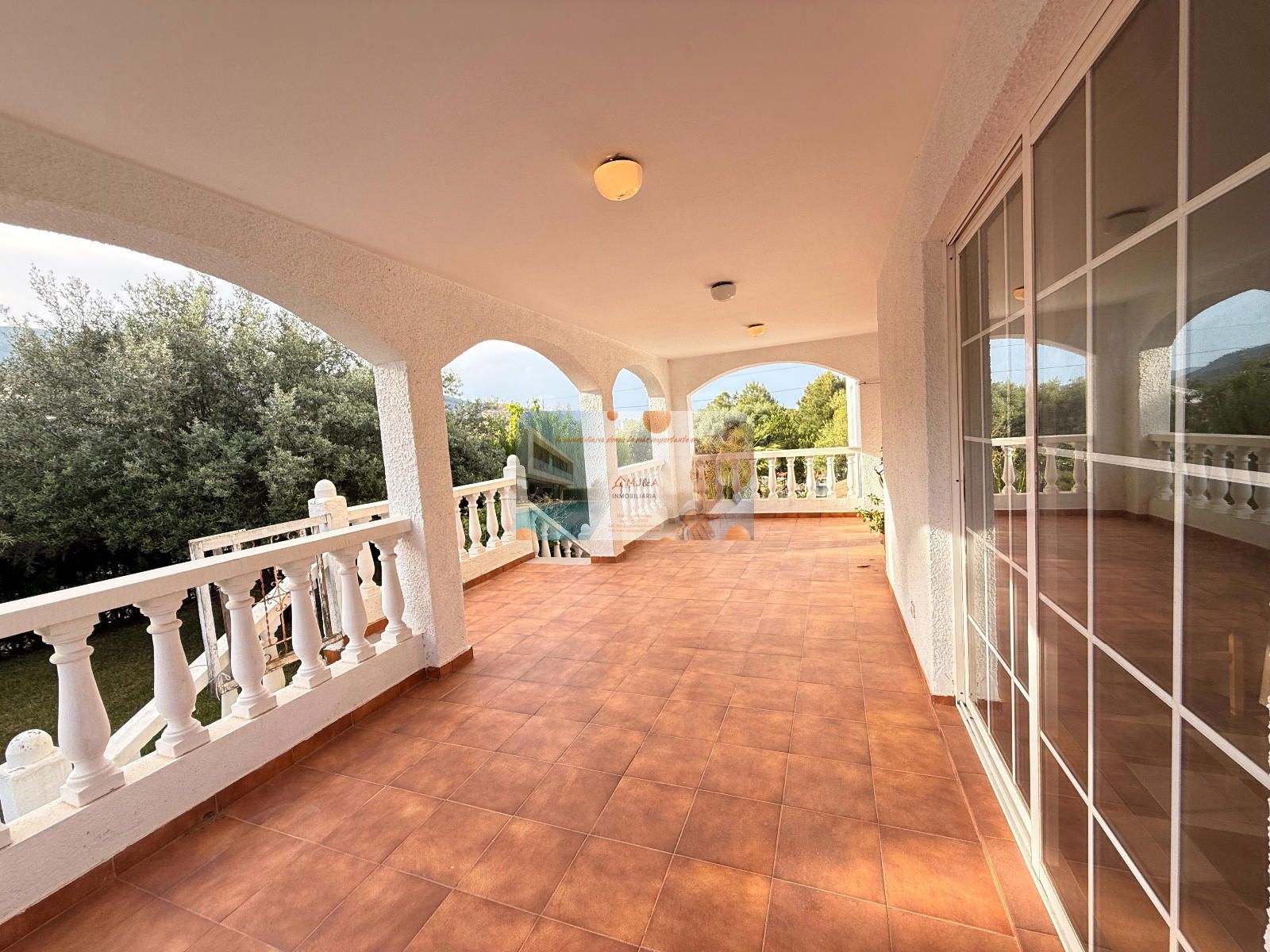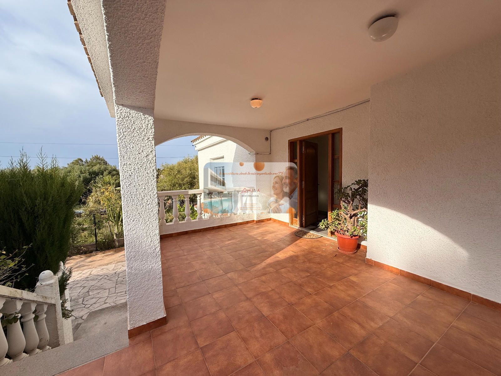 Uno de los grandes atractivos de esta villa es su bonita terraza de casi 40 m², un rincón perfecto para disfrutar del clima mediterráneo, desayunar al aire libre, compartir veladas con familia y amigos o simplemente relajarte con vistas al jardín. Un espacio que amplía la vida de la casa y conecta perfectamente interior y exterior.